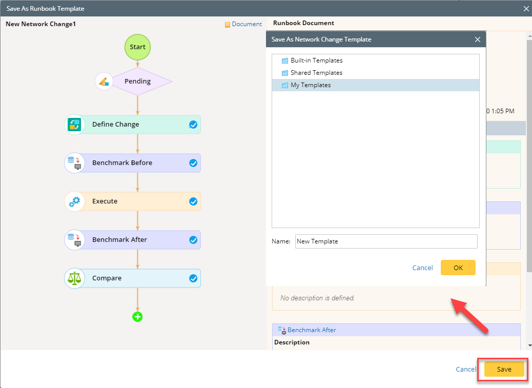2.In the Network Change Template editor, click the icon and select Save as Network Change Template.