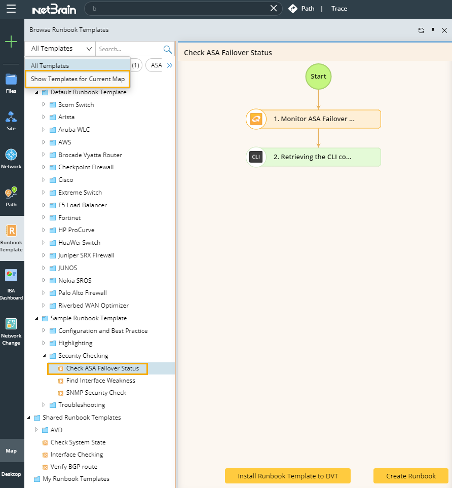 Tip: You can select Show Templates for Current Map check box to filter runbooks based on device types included on the map.