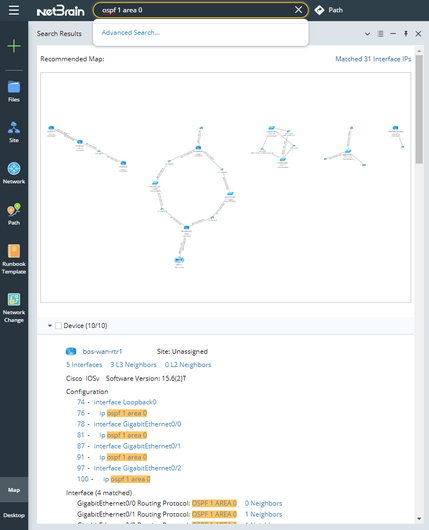 Note: The recommended map in search results shows at most 20 devices and 10 links for each device (including those links connected through a media).
