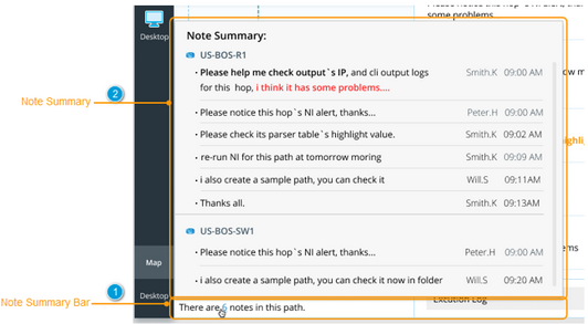 To facilitate users to perceive and view all defined notes of all hop devices, an entrance for path note summary is provided, allowing you to quickly preview the brief content of the note. You can click to jump to the specific definition of the corresponding path note.
