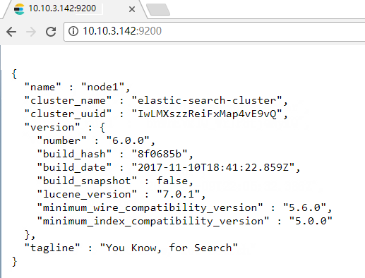 1)Enter <IP address of Index Server>:<port number> in the address bar of your web browser. For example, 10.10.3.142:9200.