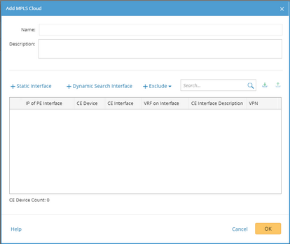 4.In the Add MPLS Cloud dialog box, enter the name and description, and add CE devices to this MPLS Cloud by either of the following ways: