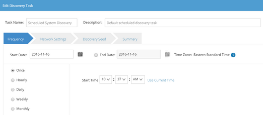 Discovery tasks can be scheduled regularly to discover new devices from a live network and automatically add the newly discovered devices to your domain. By default, the task takes all devices in your current domain as seed devices to expand the discovery.