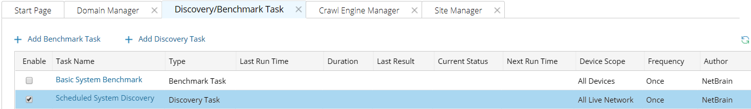3.On the Discovery/Benchmark Task tab, select the Enable check box for the Scheduled System Discovery entry.
