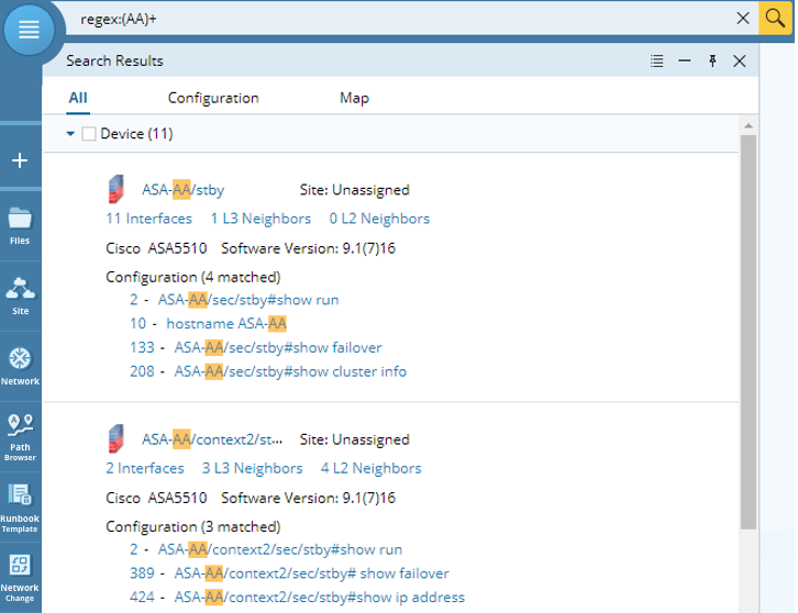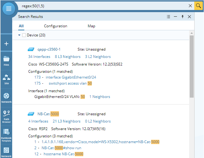 Tip: The keywords used in the search are case-insensitive. For example, entering ospf, osPF or OSPF will return the same results.