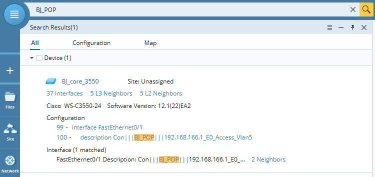 For example, when you enter BJ#POP as the keyword, it will be split into two terms: BJ and POP. The name of the objects containing either BJ or POP is listed in the search results, with the matched term highlighted.