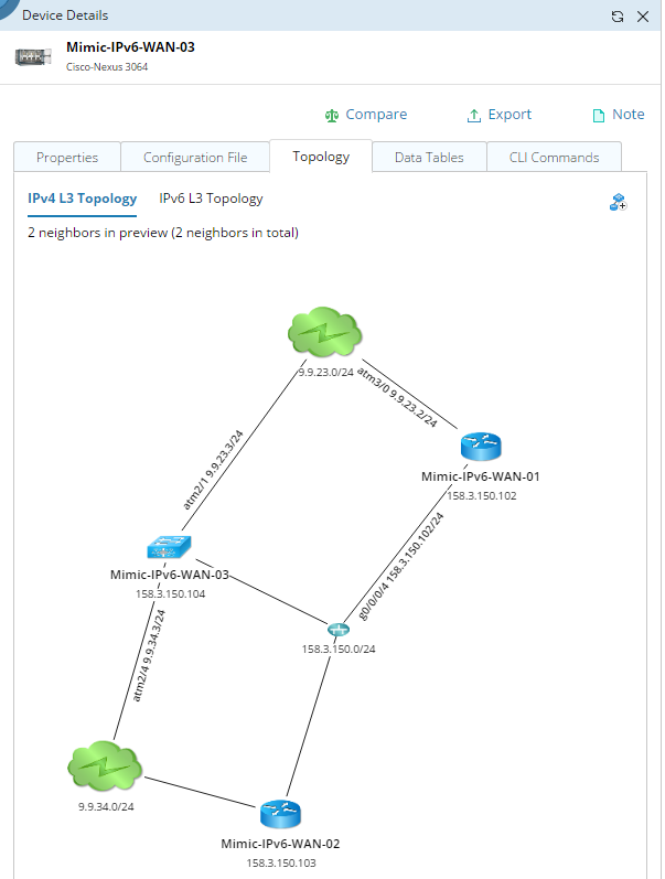 Tip: Only the built topology types of the device are listed. The IPv4 Layer 3 topology is built automatically during a scheduled discovery task. Both the Layer 2 topology and IPv6 Layer 3 topology can be built through a benchmark task. See Benchmark Task Settings for more details.