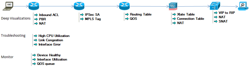 Unlike traditional traffic path tools, NetworkBrain Dynamic Path Calculator visualizes the forwarding of packets and emulates the real packet forwarding process in your live network (including overlay and underlay networks). It looks into modern technologies, such as policy-based routing and load balancing, and provides end-to-end visibility across any network path to help diagnose and troubleshoot network traffic issues.
