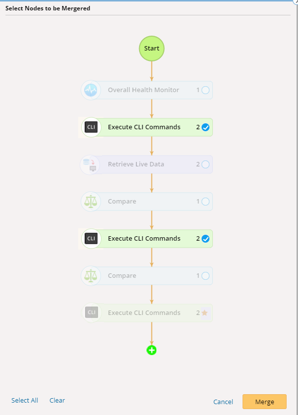 Tip: The merging is regardless of the action node name and detailed action configurations, which means, two Qapp nodes can be merged even if they have different action node or contain different Qapps.