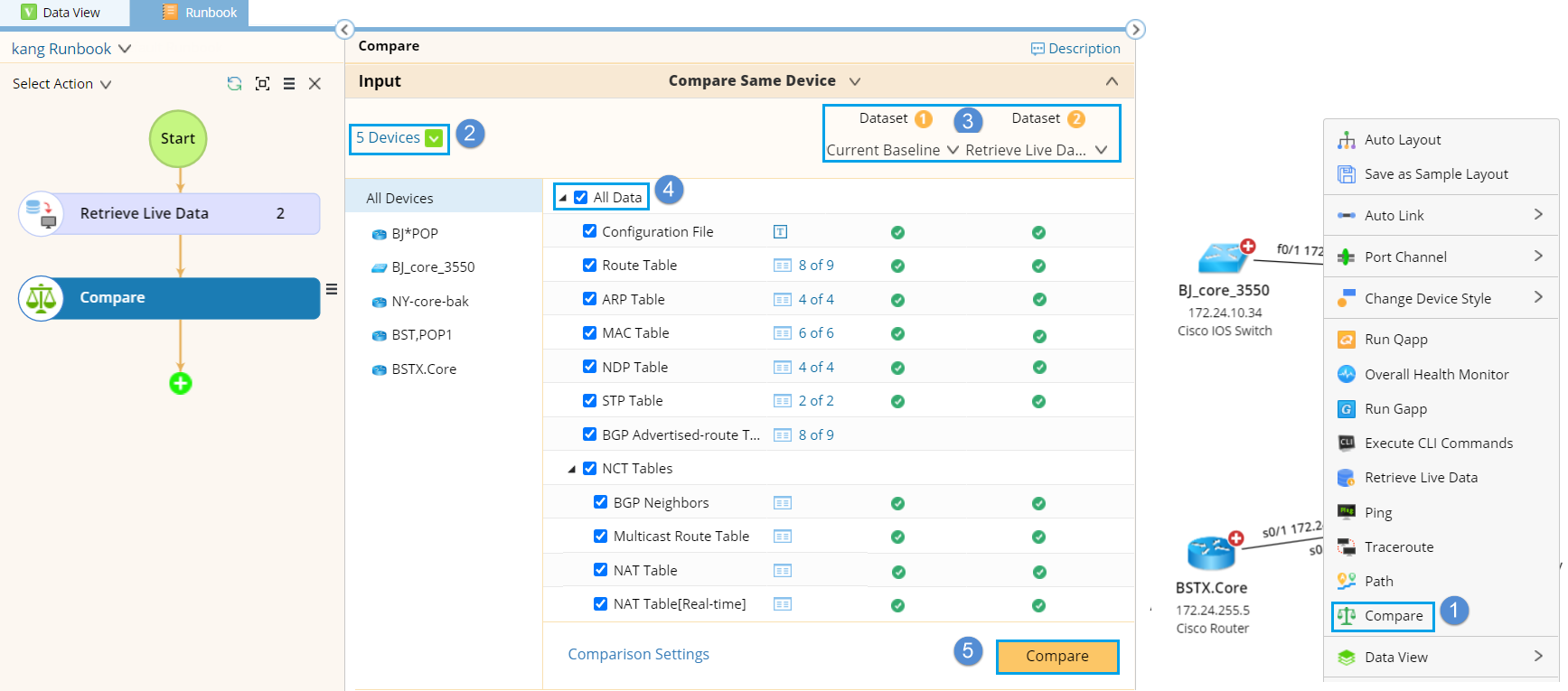 2.In the Compare pane, all devices on the map are selected as target devices by default. To customize the devices, click the