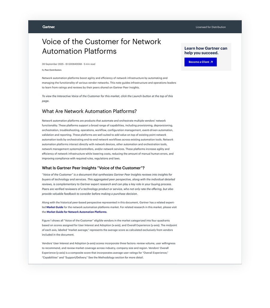 Gartner Peer Insights content consists of the opinions of individual end users based on their own experiences with the vendors listed on the platform, should not be construed as statements of fact, nor do they represent the views of Gartner or its affiliates. Gartner does not endorse any vendor, product or service depicted in this content nor makes any warranties, expressed or implied, with respect to this content, about its accuracy or completeness, including any warranties of merchantability or fitness for a particular purpose.